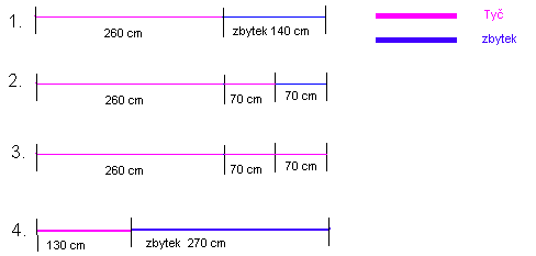 1. Kolik kusů prutů o délce čtyř metrů budeme minimálně potřebovat?
